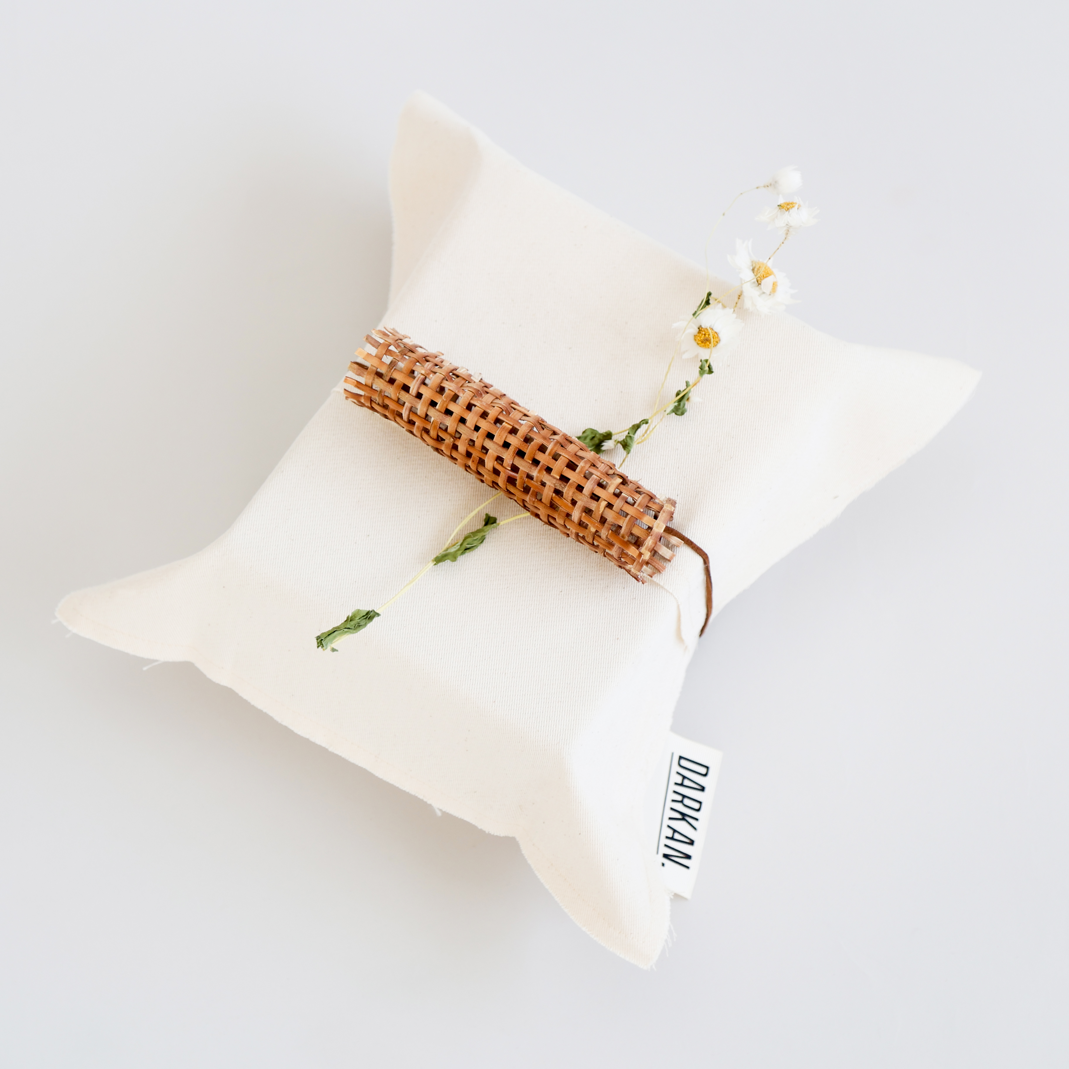 Linen Envelope Wrapping delicately wrapped with a velvet rope, embellished with a pitch of dry flower & rattan.