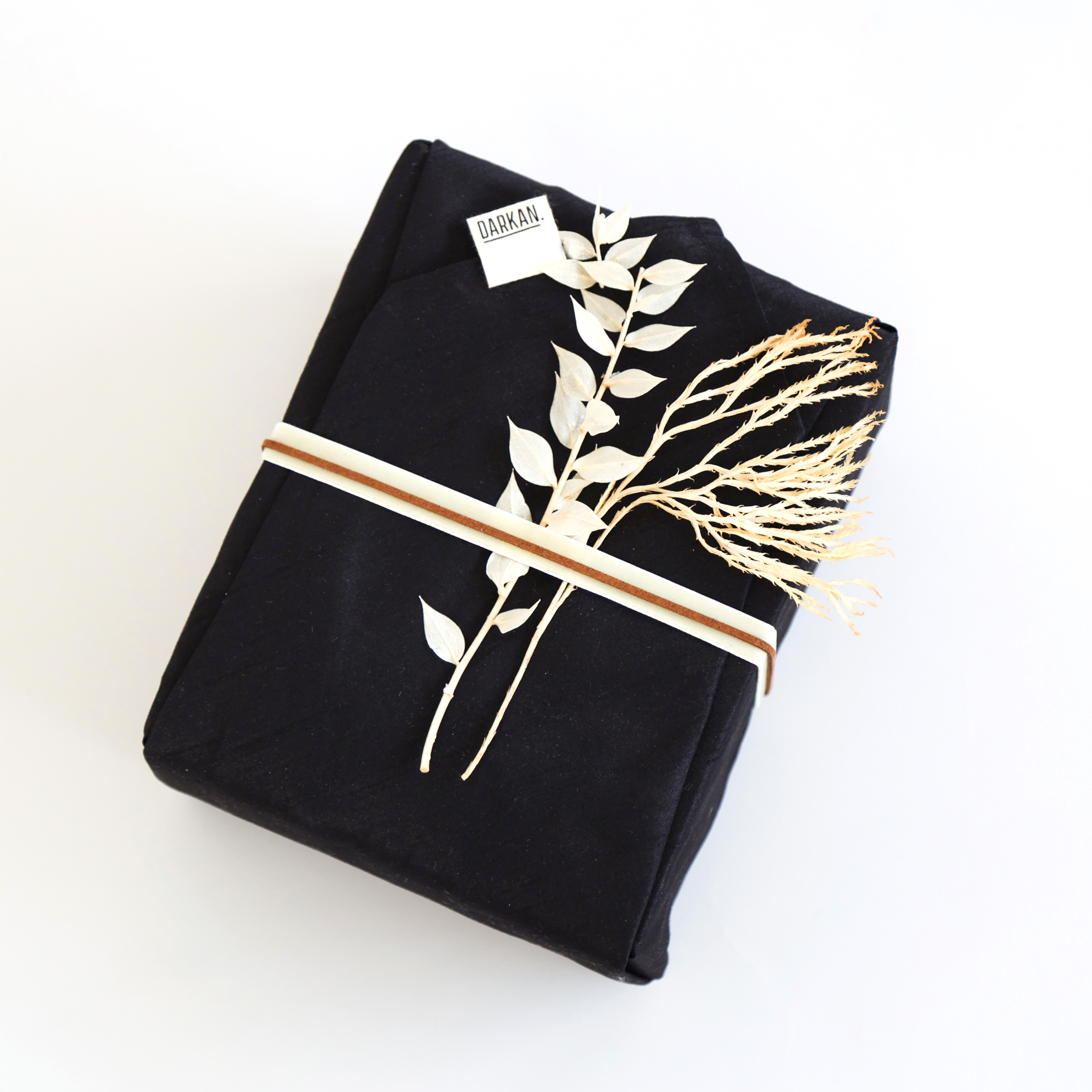 Delicately wrapped with a velvet rope, embellished with a pitch of a dry flower.